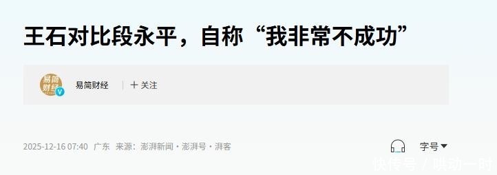 27. 信源来源:澎湃新闻 2025.12.16 王石对比段永平,自称“我非常不成功”